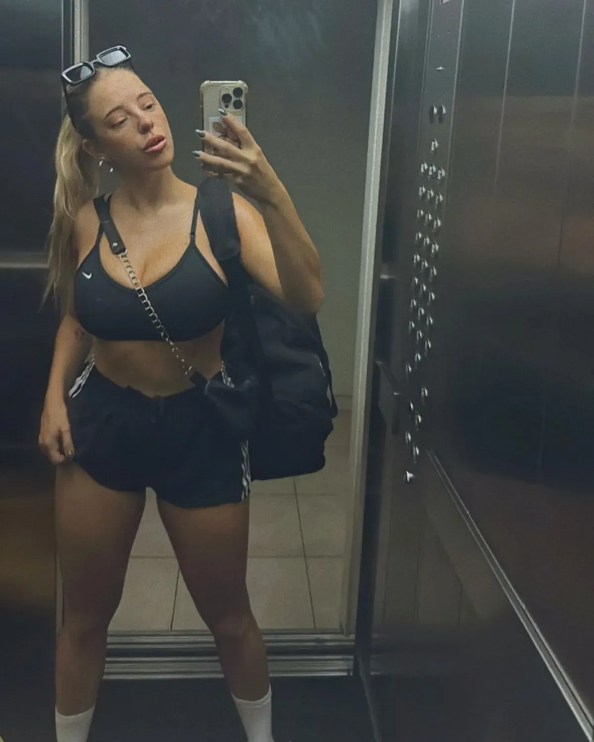 Nati Jota metió combo: beboteo en el ascensor, con shorcito y top apretado