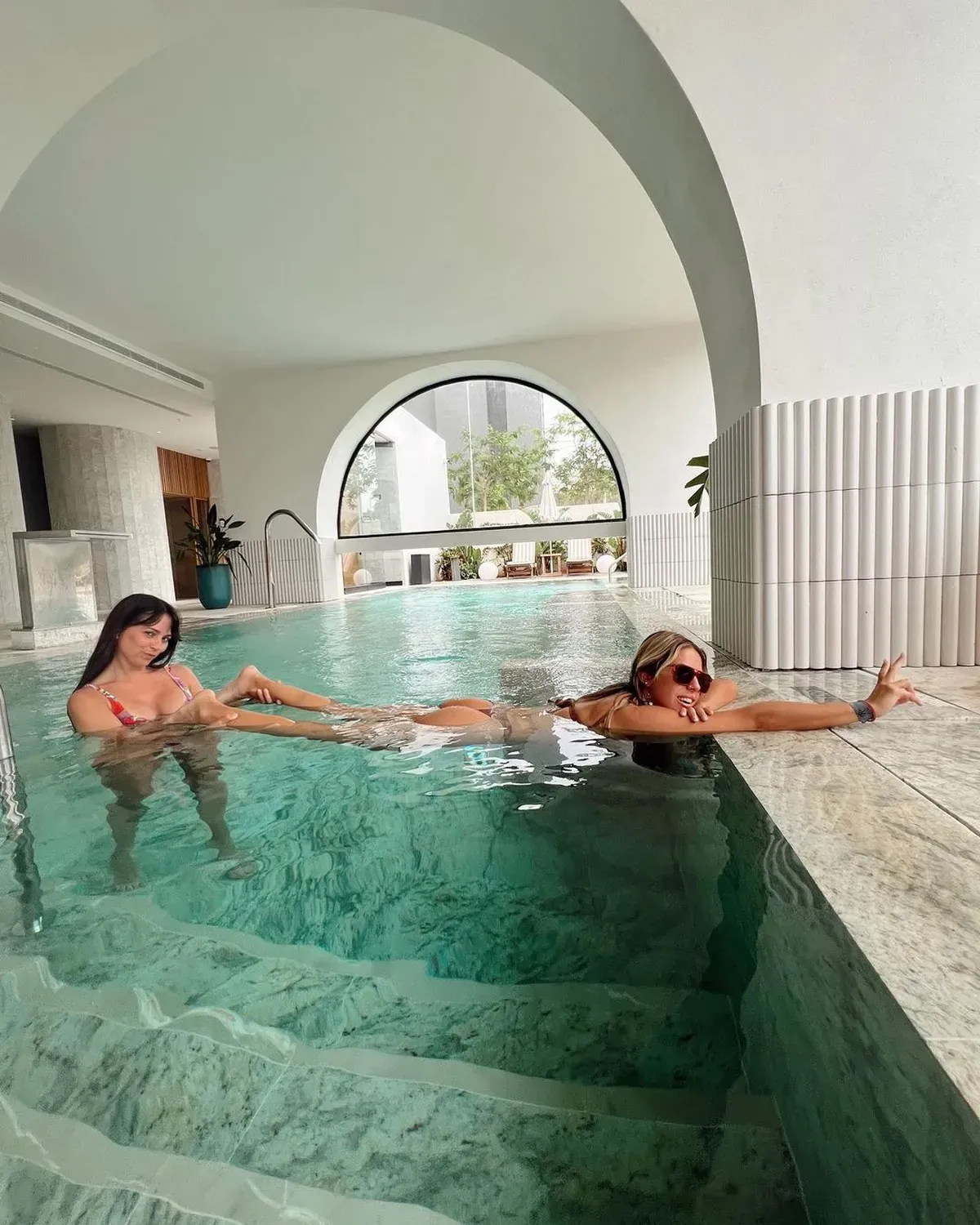La diosa junto a Lelu Melendy, disfrutó de un día de relax y pileta y aprovechó para mostrar su lomazo luciendo una micro-bikini colaless color nude súper sexy.