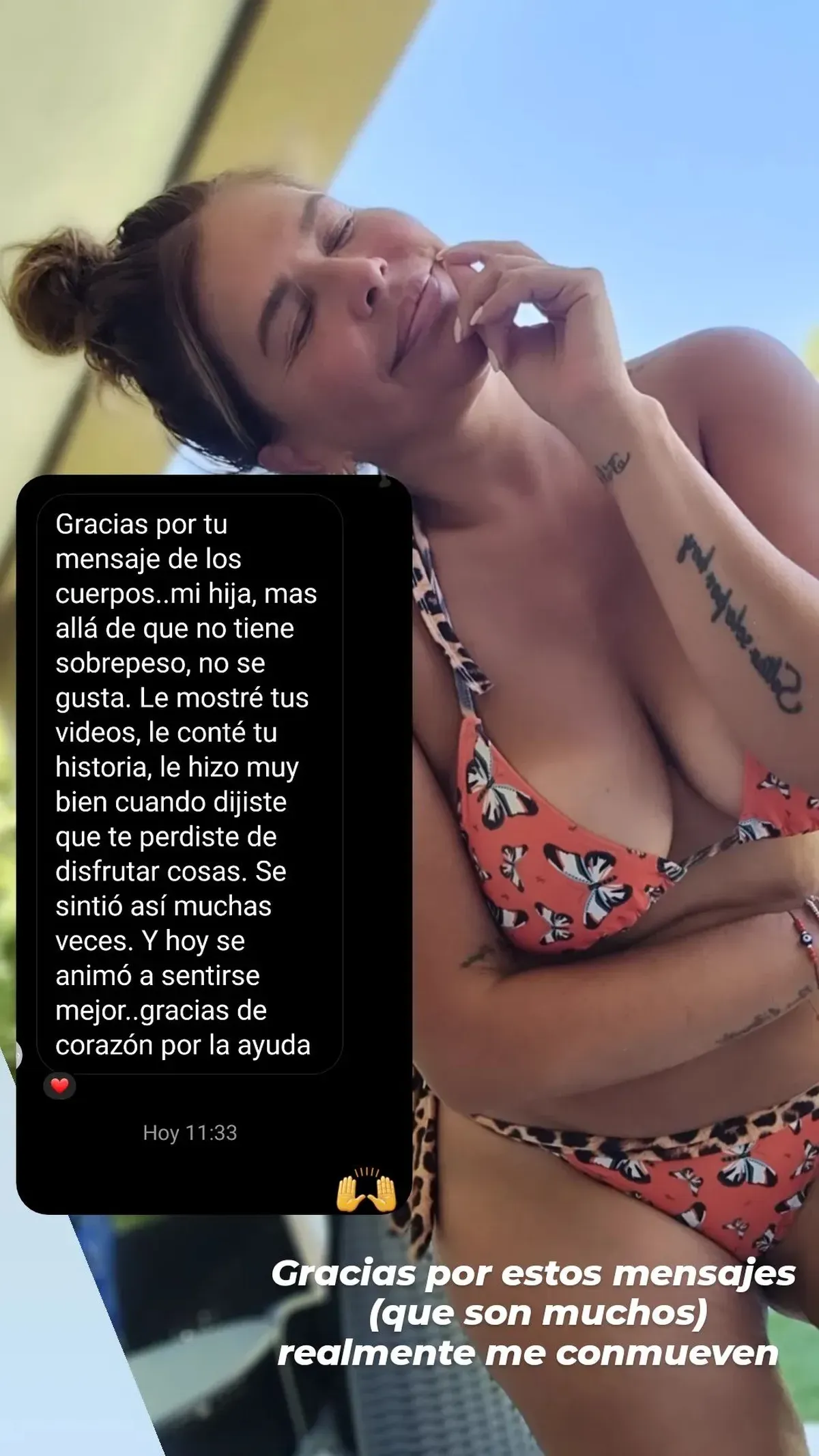 "Gracias por estos mensajes que son muchos, realmente me conmueven", escribió Nazarena junto a uno de los agradecimientos de una usuaria que la felicitó por sus publicaciones sin filtro.