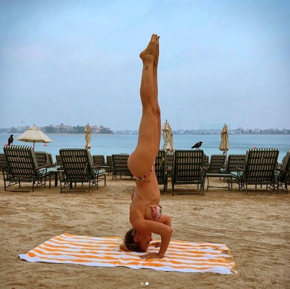 Evangelina Anderson publicó en Instagram dos fotos en las que se la ve practicando yoga, en difíciles posiciones. El lugar que eligió para la actividad fue la playa y en medio de las contorsiones aprovechó para mostrar su fantástica figura.