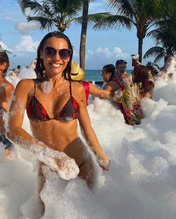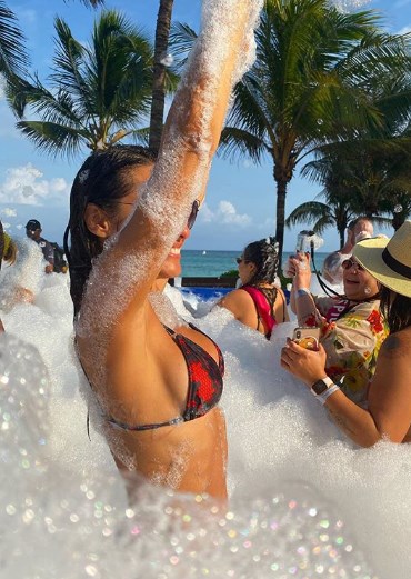 Este jueves hubo una fiesta de la espuma en el lugar y Pampita compartió postales, donde se la ve bailando alegre en bikini. Más tarde, compartió otras imágenes de su estadía en el paradisíco lugar.