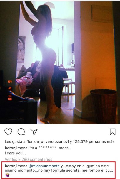 A esta imagen le llegaron comentarios que hablaban de un supuesto uso de retoques digitales, dando a entender que “no era real”. A los que ella respondió: “Estoy en el gym en este mismo momento, no hay fórmula secreta, me rompo el cu…”.