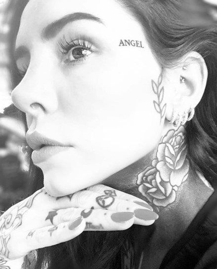 Luego de pasar por el tatuador, La hija de Marcelo Tinelli mostró en su cuenta personal de Instagram, donde tiene un total de 3,6 millones de seguidores, su rostro donde se puede leer la palabra “Angel” a la altura de la cien.