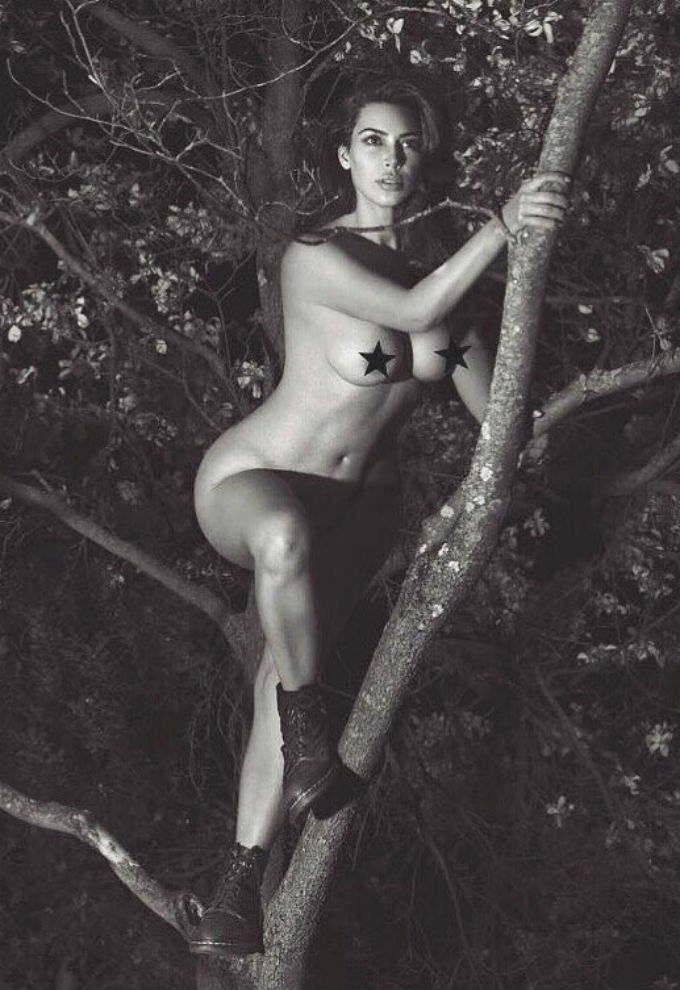Retratada por los fotógrafos Mert & Marcus, la morocha deslumbró con su figura totalmente desnuda sobre un árbol. Sólo se dejó las botas puestas, y usó unas estrellitas para tapar sus pezones en la red social.