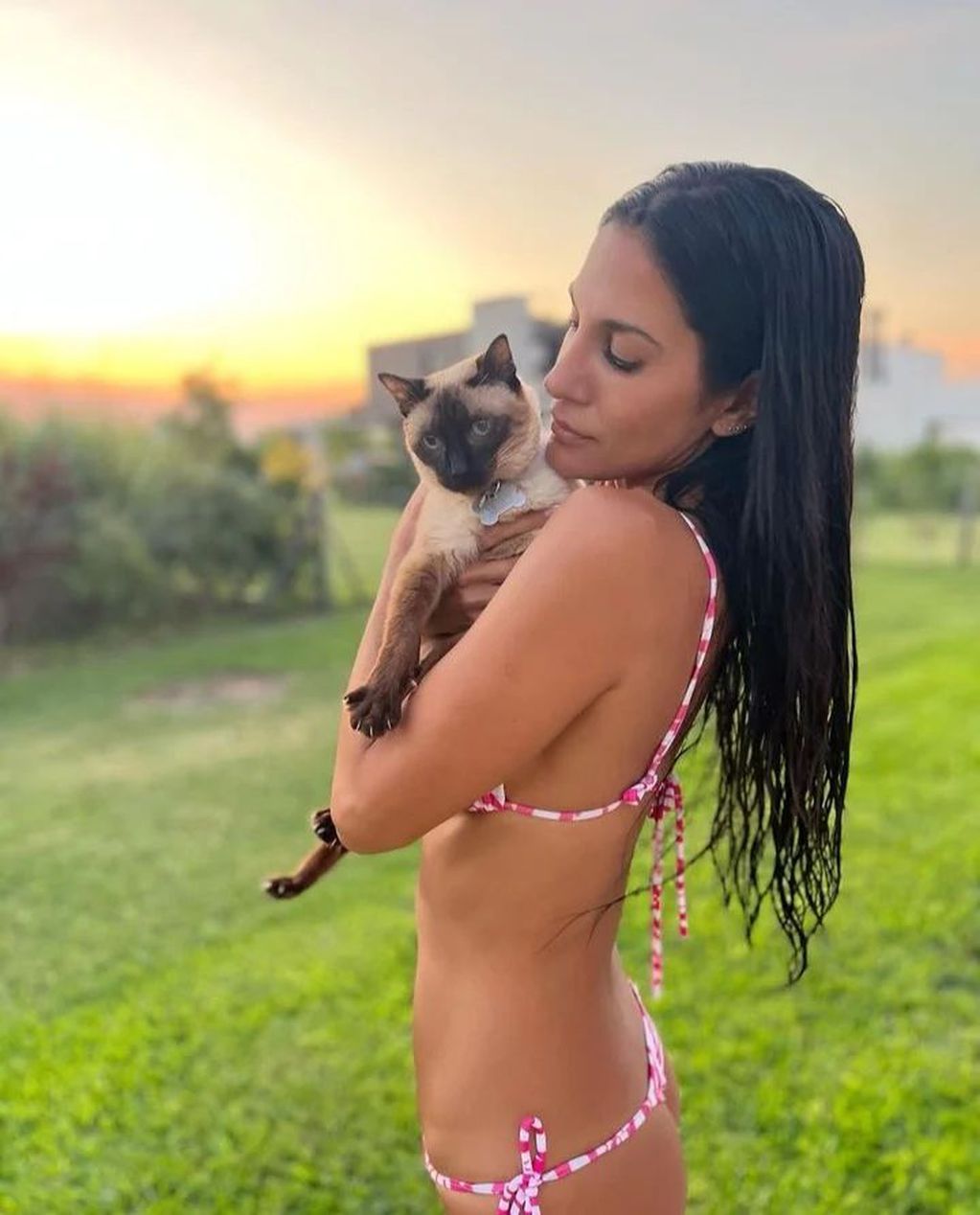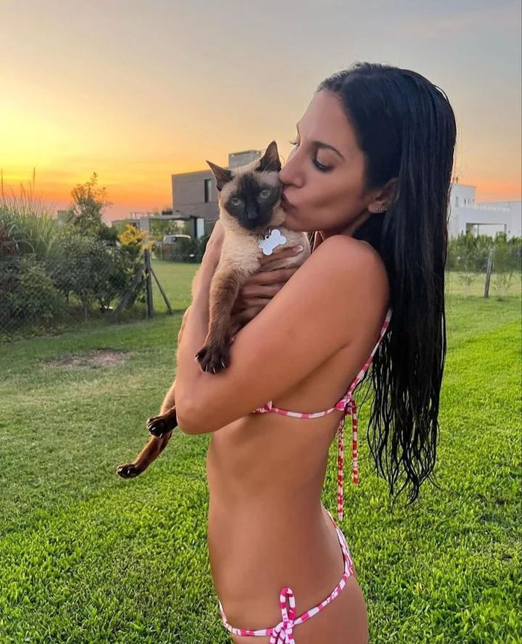 Esta vez, en Instagram @fandesilvinaescudero, sus seguidores llenaron de elogios unas imágenes donde Silvina sedujo desde su jardín, con una microbikini, mostrando su tremenda figura y “mañoseando” a una de sus mascotas, un bello gatito.