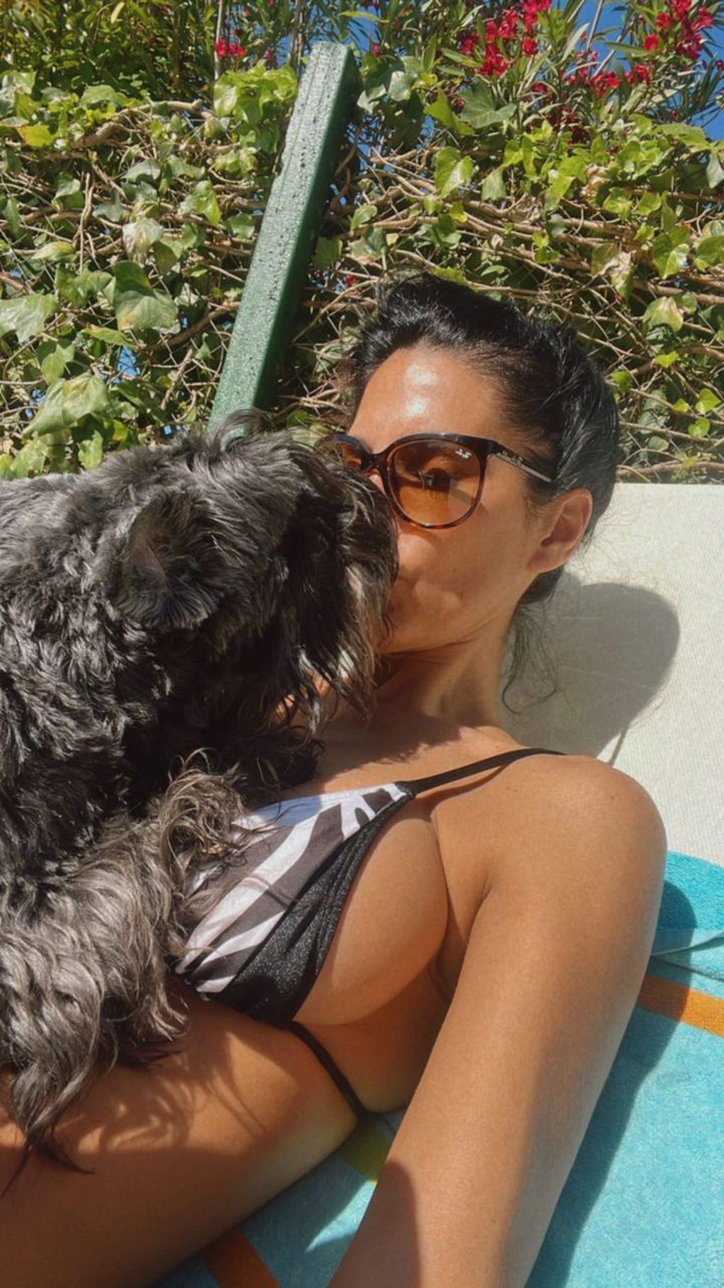 A la bailarina se la pudo observar con su perro a la orilla de su pileta, tanto en formato historias como en posteos, cosechando gran cantidad de likes en su publicación.
