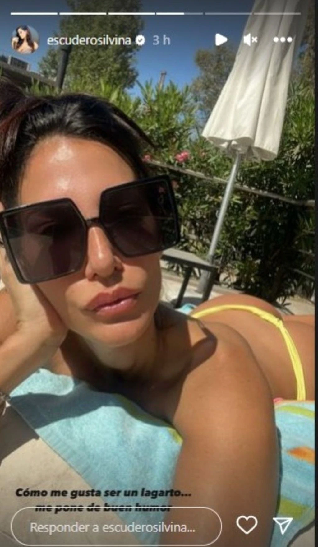 Allí Escudero decidió publicar una fotografía en la que se la pudo observar con un microbikini de cebra, tomando sol con la firme intención de obtener un maravilloso bronceado.