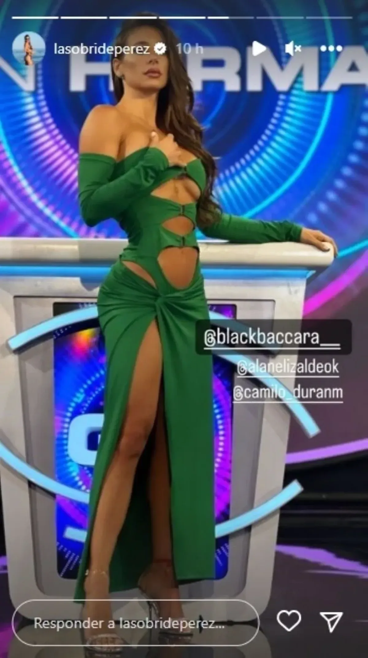 Primero, Sol Pérez reventó el debate de Gran Hermano con un vestido verde estilo sirena lleno de recortes en el abdomen y un tajo en la pierna súper profundo.