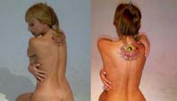 Para estas fotografías, la exgatita de Jorge Porcel se desnudó totalmente, aunque tapó sus partes íntimas mientras que en otras tomas posó de frente a la cámara pero tras un tul.