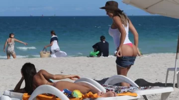 La modelo Argentina está de vacaciones en Miami donde no tuvo vergüenza para postrar sus atributos en la arena donde, junto con una amiga, se la encontró tomando sol.