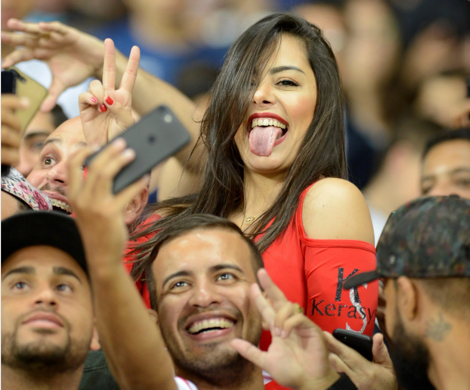 La morocha no sólo se mostró feliz por el buen desempeño de su selección ante la albiceleste, sino que además fue toda una celebridad en la tribuna: los fanáticos no paraban de pedirle fotos que aceptaba gustosa.