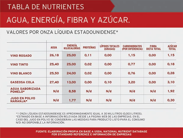 Sin embargo, habría que hacer una diferencia entre la bebida proveniente de la vid y otras. El vino comparte características nutricionales con los alimentos, contiene proteínas y vitaminas y según el Departamento de Agricultura de Estados Unidos las calorías aportadas no contienen grasas ni tanto azúcar a diferencia de las gaseosas.