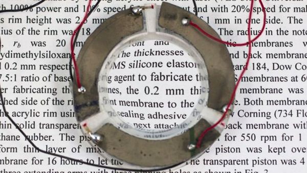 La peculiar característica de estos anteojos es que no tienen cristales, sino membranas llenas de glicerina, que cambian su curvatura (su concavidad o convexidad) para modificar su aumento gracias a unos actuadores piezoeléctricos en el marco de los anteojos.