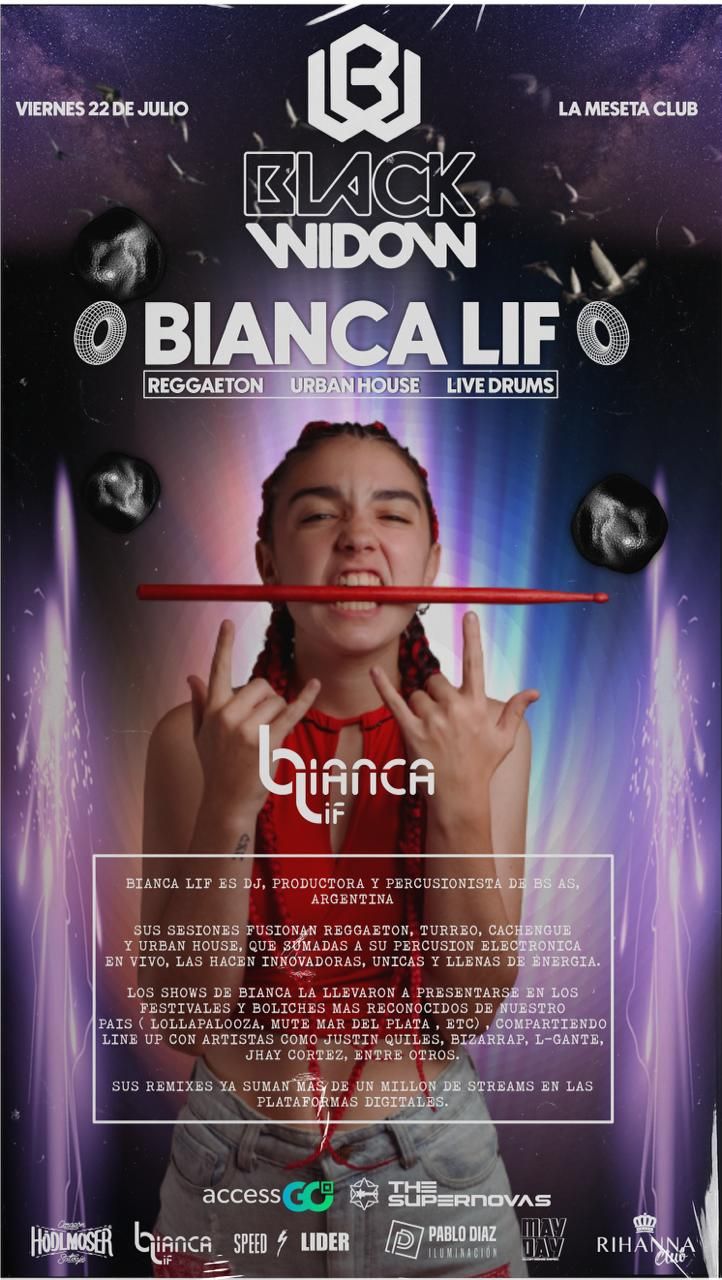 ‘Black Widow’, la fiesta más extravagante llega a La Meseta y lo hace en 3 sectores. Un sector general con 3 DJ, Patineta – Lady Rosita – Germán Gómez y desde Buenos Aires Bianca Lif, la DJ del momento con una súper puesta en escena: acróbatas , bailarines y otro sector de invitados especiales que constará con piza en barra, un Vip donde ya fueron invitadas modelos , deportistas y personajes sanjuaninos – May Day el sector electrónico