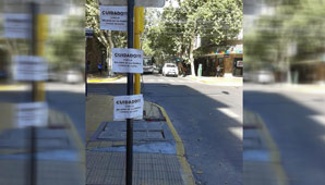 La ciudad suele entregar postales insólitas. Esta vez, un alma caritativa colocó carteles en un semáforo alertando sobre la 'peligrosa' rampa.