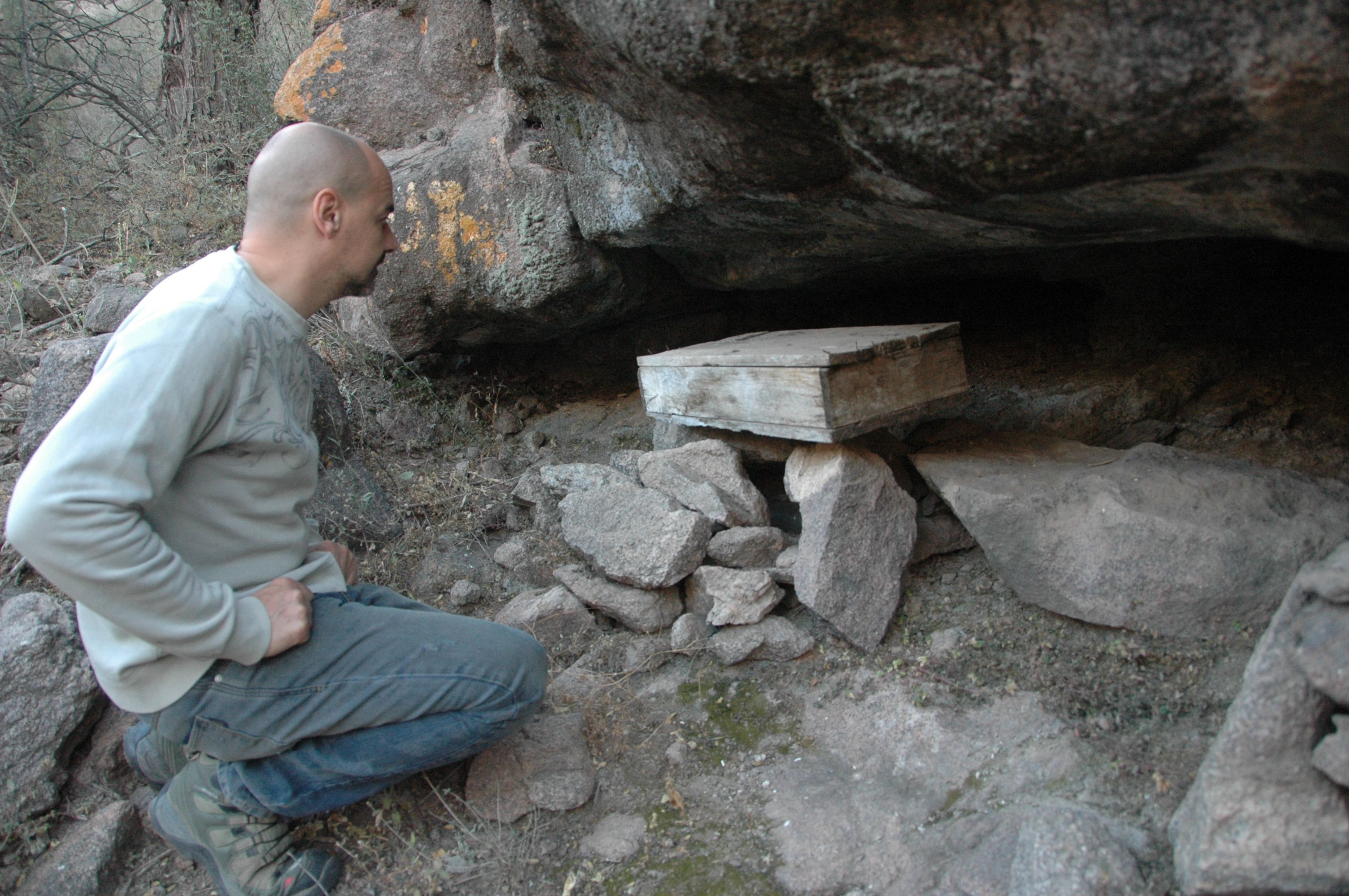 Algunos dicen que lo encontró un baqueano después de una crecida del río, otros que son huesos que aparecieron y que podrían ser de un bebé de un pueblo originario. Lo cierto es que las maderas ya negruzcas y los pocos restos óseos que quedan en un pequeño cajoncito delatan que mucho tiempo ha pasado en esa cueva ubicada, a unos tres kilómetros de La Majadita, en Valle Fértil.