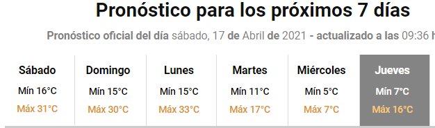 Este domingo y lunes el buen tiempo seguirá acompañando a los sanjuaninos con temperaturas mínimas que rondarán los 15 grados y máximas que se ubicarán entre los 30 y 33 grados.