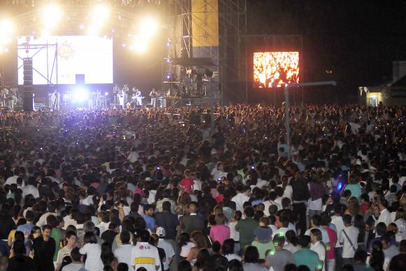 A pesar de que el locutor pidió "mantener la calma y no saltar", cuando los cuarteteros hicieran su aparición en el escenario, no logró acatamiento. Cuando apareció Lisandro Márquez, uno de los vocalistas del grupo, se desató el delirio. La masa lo recibió a los saltos. A nadie le importó los codazos y pisotones que recibió a cambio. Los únicos que se abstuvieron de expresar su euforia de esta manera fueron quienes, en medio de la multitud, formaron círculos para proteger a los niños que, vencidos por el sueño, dormían en el suelo. Y aquellos que cargaban en sus hombros a sus hijos o mujeres para que pudieran tener una mejor visión del escenario. Un privilegio que menos de la mitad de espectadores tuvo. Fue tal la cantidad de gente que muchos debieron conformarse con ver el espectáculo a través de las dos pantallas gigantes que colocaron en el lugar.