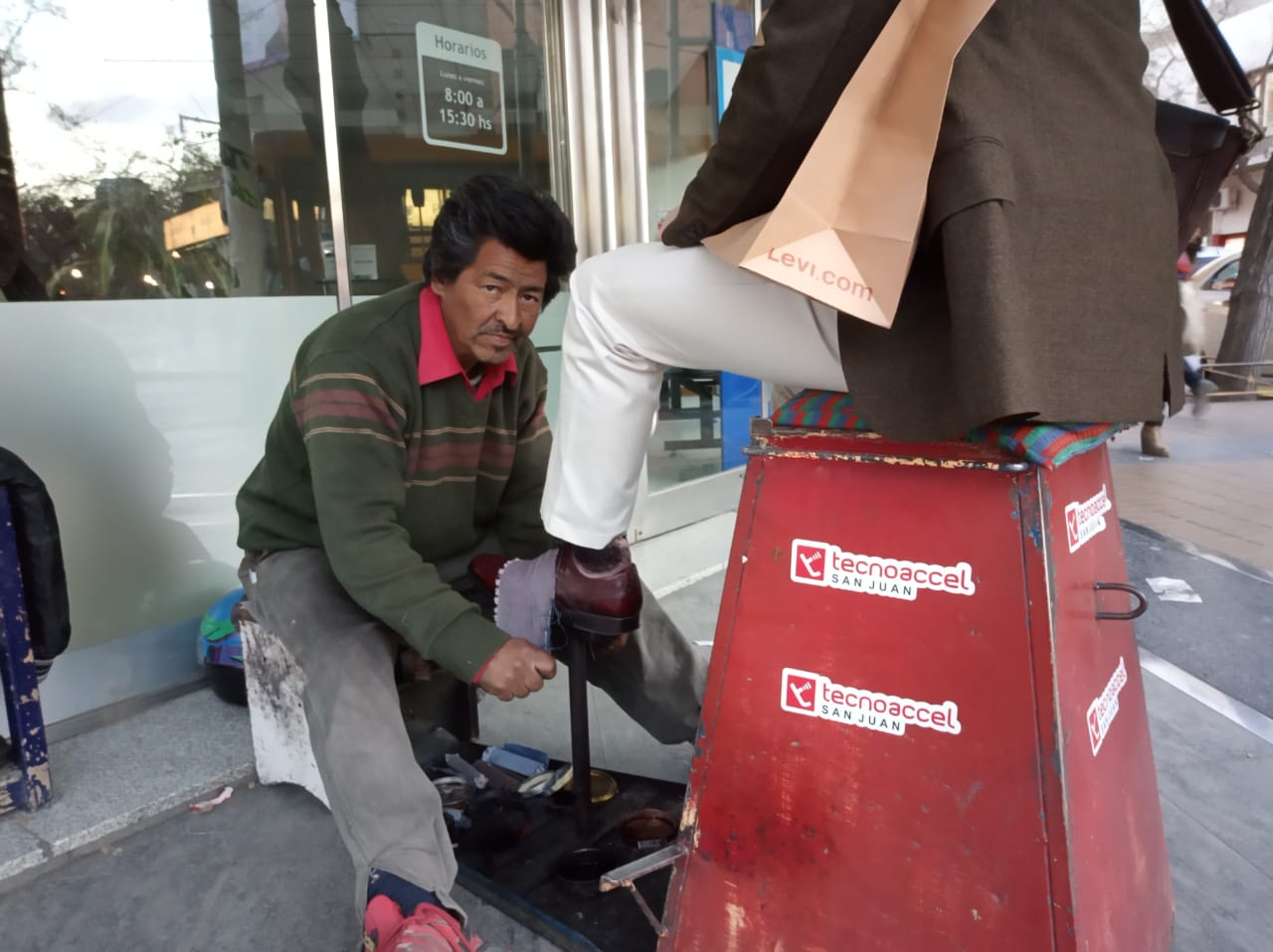 El lustrabotas llega todos los días -incluso los domingos- de Rawson al centro sanjuanino, en bicicleta. “No puedo venir en colectivo, el pasaje sale 22 pesos, es impagable y encima dicen que lo quieren aumentar” acota Figueroa. Y, con un dejo de pesimismo, agrega: “estamos mal pero antes también, siempre es lo mismo, he pasado muchas crisis acá”. No obstante, dice que no deja que esos pensamientos lo embarguen demasiado tiempo.
