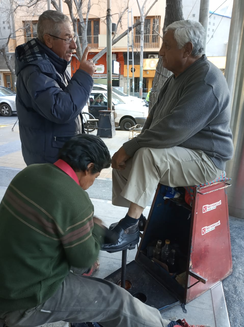 Los clientes son varios, todos arriba de los 50 años salvo el joven bien arreglado. Saben que él es uno de los pocos lustrabotas que quedan, que es uno de los bastiones que sostiene un oficio casi extinto, y cuando pasan por la esquina, se quedan a que “aunque sea les saque un poco la tierra a los zapatos”.