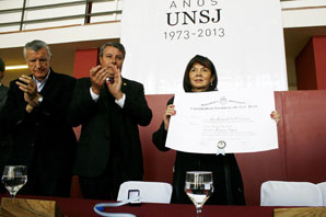 -Es un orgullo muy grande recibir el Honoris Causa de una universidad. Para mí, estas cosas son situaciones inolvidables. Estoy muy agradecida porque me acogieron maravillosamente y me siento muy conmovida por el recibimiento de la gente de San Juan, el gobernador Gioja y todos los otros funcionarios. Además, por el cariño que me dieron todos.