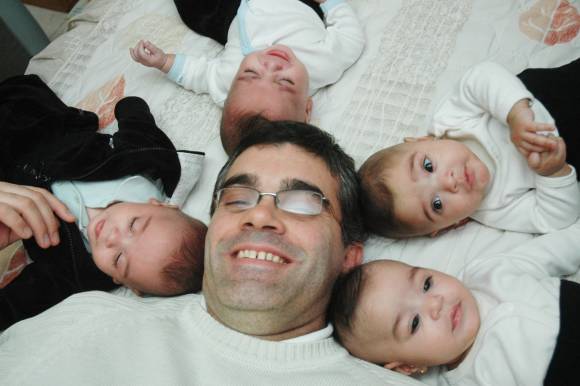 Claro, "un padre normal, pero que tuvo una pequeñísima diferencia entre otros: tuve 4 hijos de una sola vez", dice entre risas el empleado de una cooperativa de viviendas. Y agrega: "Si la llegada de un hijo te cambia la vida, ¡imaginate 4!".