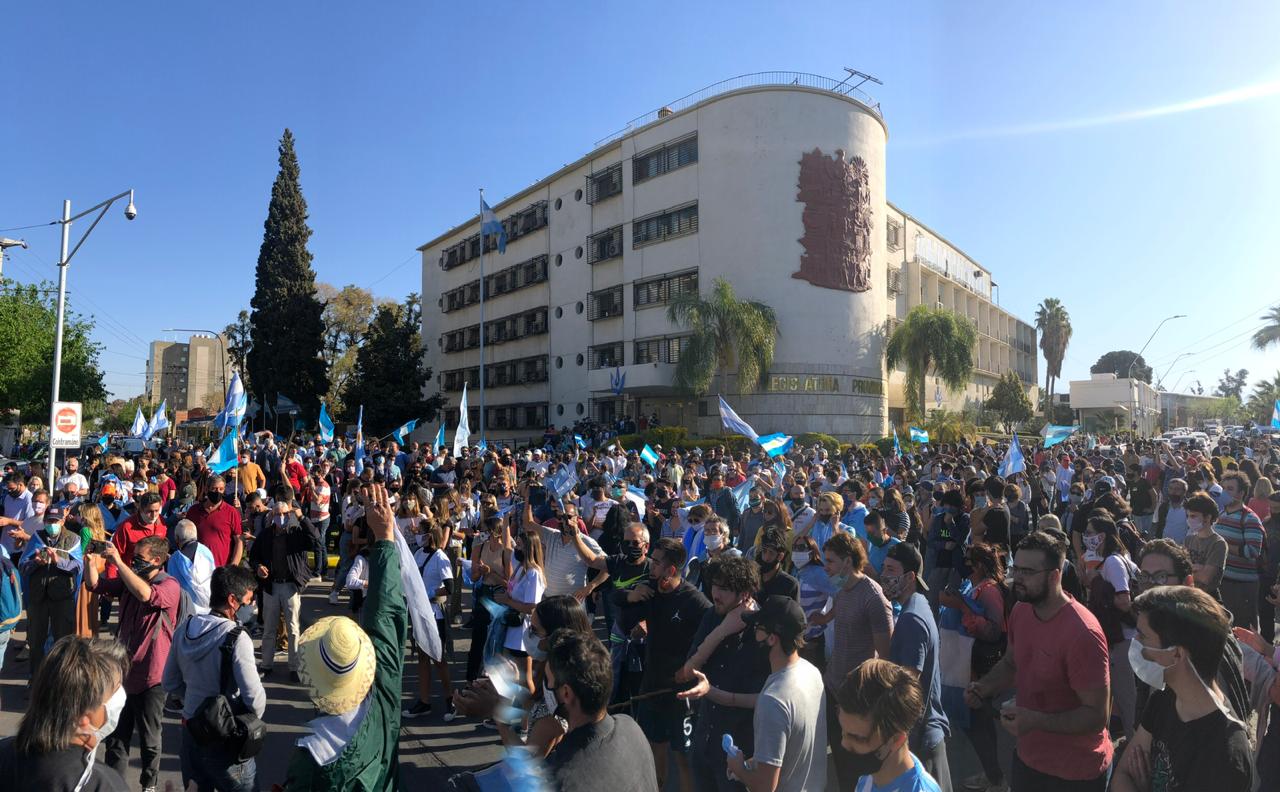 Luego de la marcha por los alrededores de la Plaza 25 de Mayo, los miles de autoconvocados se subieron a sus vehículos y fueron en caravana hasta Tribunales, la Legislatura provincial y también hasta Casa de Gobierno, en una manera simbólica de demostrar su descontento hacia las autoridades.