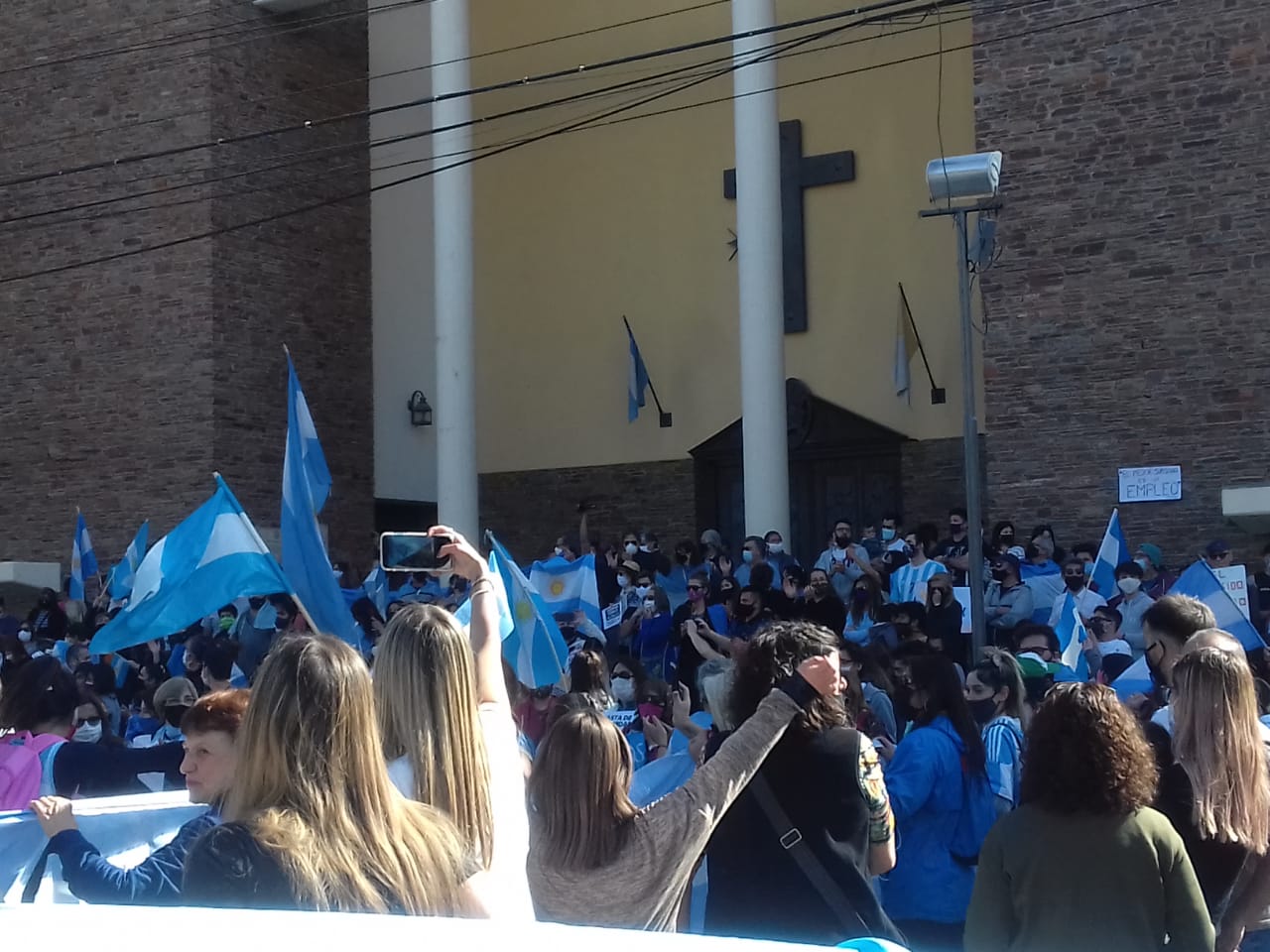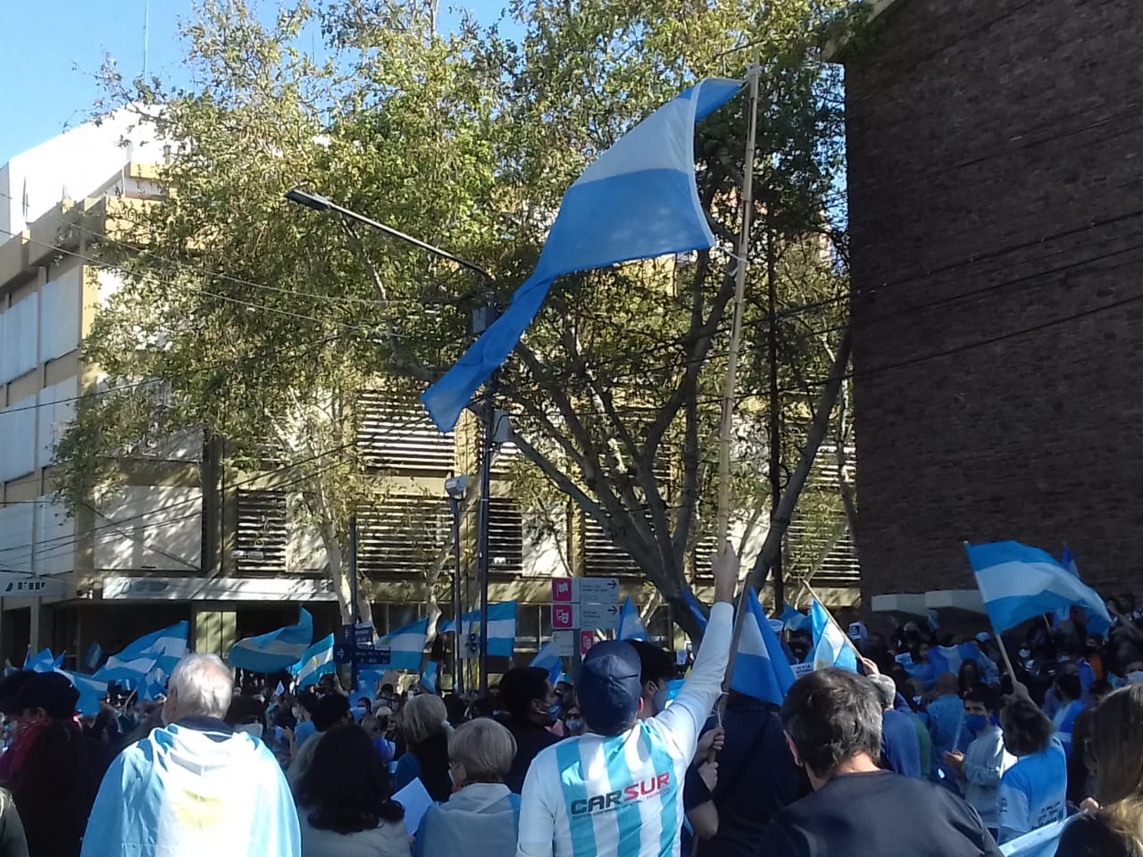 El centro de la concentración fue sobre las escalinatas de la Catedral, donde se escuchó el Himno Nacional Argentino, la Marcha de San Lorenzo, entre otros. Allí y tal como ocurrió el pasado martes con los militantes del PJ en el Centro Cívico por la llegada del presidente Alberto Fernández, nadie tuvo en cuenta el distanciamiento social teniendo en cuenta la probabilidad de contagios por coronavirus aunque sí portaron el tapabocas correspondiente.