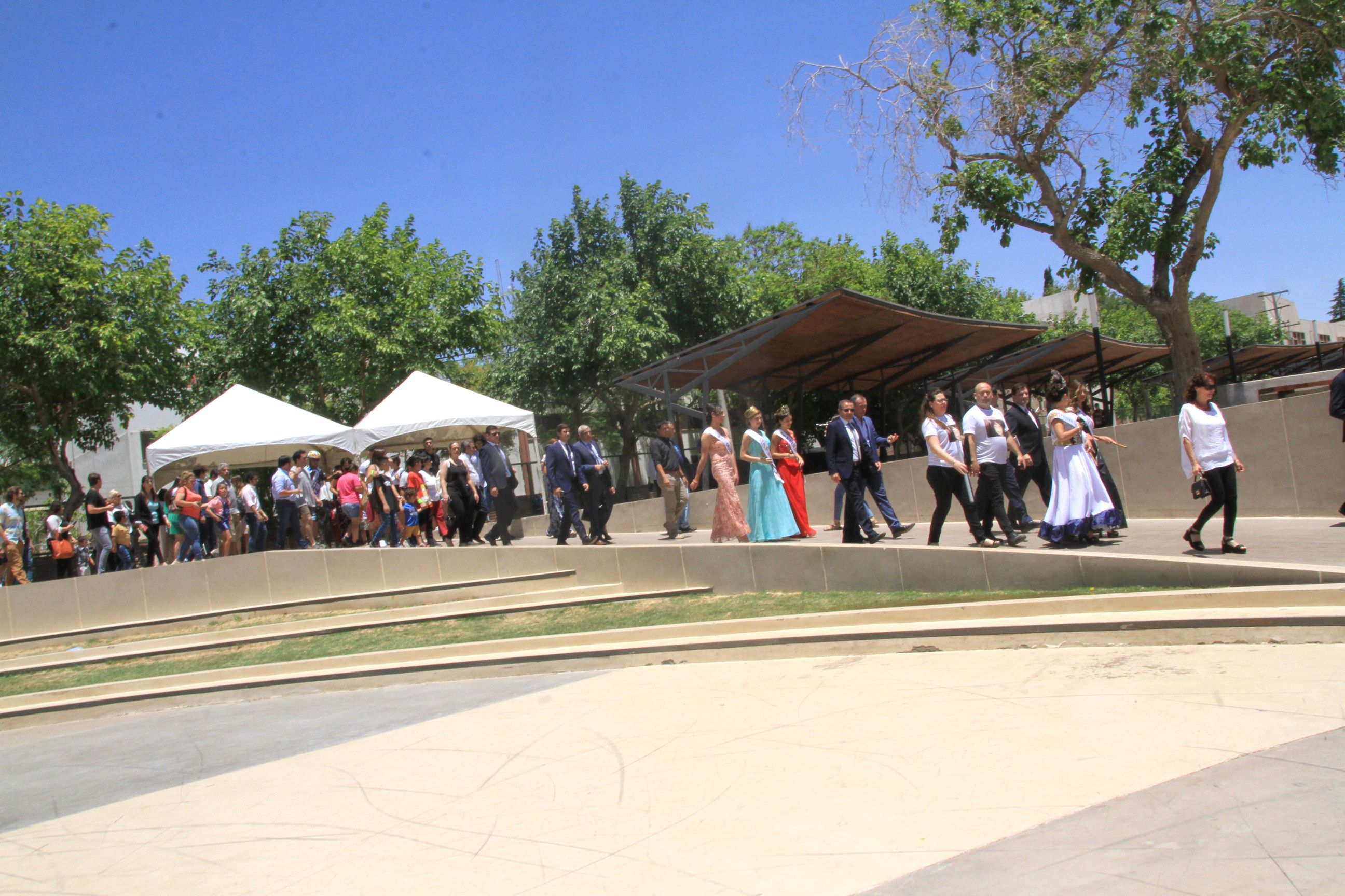 Sunko Eyquem y Milagros Figueroa. Ambos tienen síndrome de Down y asisten al Bachillerato José Manuel Estrada, en Chimbas, donde integran el Cuerpo de Bandera. Son segundo y tercera escolta respectivamente.
