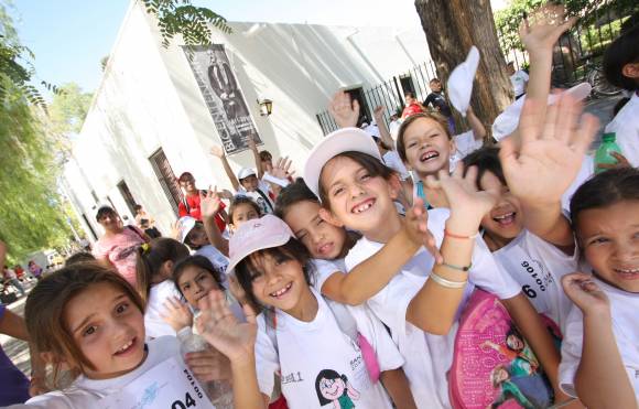 Aprovecharon las últimas semanas de actividades en las colonias de vacaciones y organizaron un trote en el corazón de la ciudad. Pero los 300 chicos que participaron del maratón no lo hicieron sólo para divertirse. Aprovecharon la oportunidad y rindieron un homenaje a Domingo Faustino Sarmiento. Esta es la primera actividad que se realiza en la provincia para recordar el bicentenario del nacimiento del prócer, que será el próximo 15 de febrero, y estuvo organizada por la Municipalidad de la Capital y el Ministerio de Desarrollo Humano, a cargo de las colonias en el departamento. El resto de las colonias de la provincia también realizó un maratón ayer por la mañana. Los chicos salieron desde el edificio municipal y, después de atravesar el microcentro sanjuanino, llegaron hasta la puerta de la Casa Natal de Sarmiento. Durante el trayecto, fueron acompañados por los profesores de las colonias y por deportistas sanjuaninos destacados en distintas disciplinas. Ellos fueron los que llevaron banderas gigantes en las que escribieron mensajes alusivos a Sarmiento y fueron leídos en la puerta del museo.
