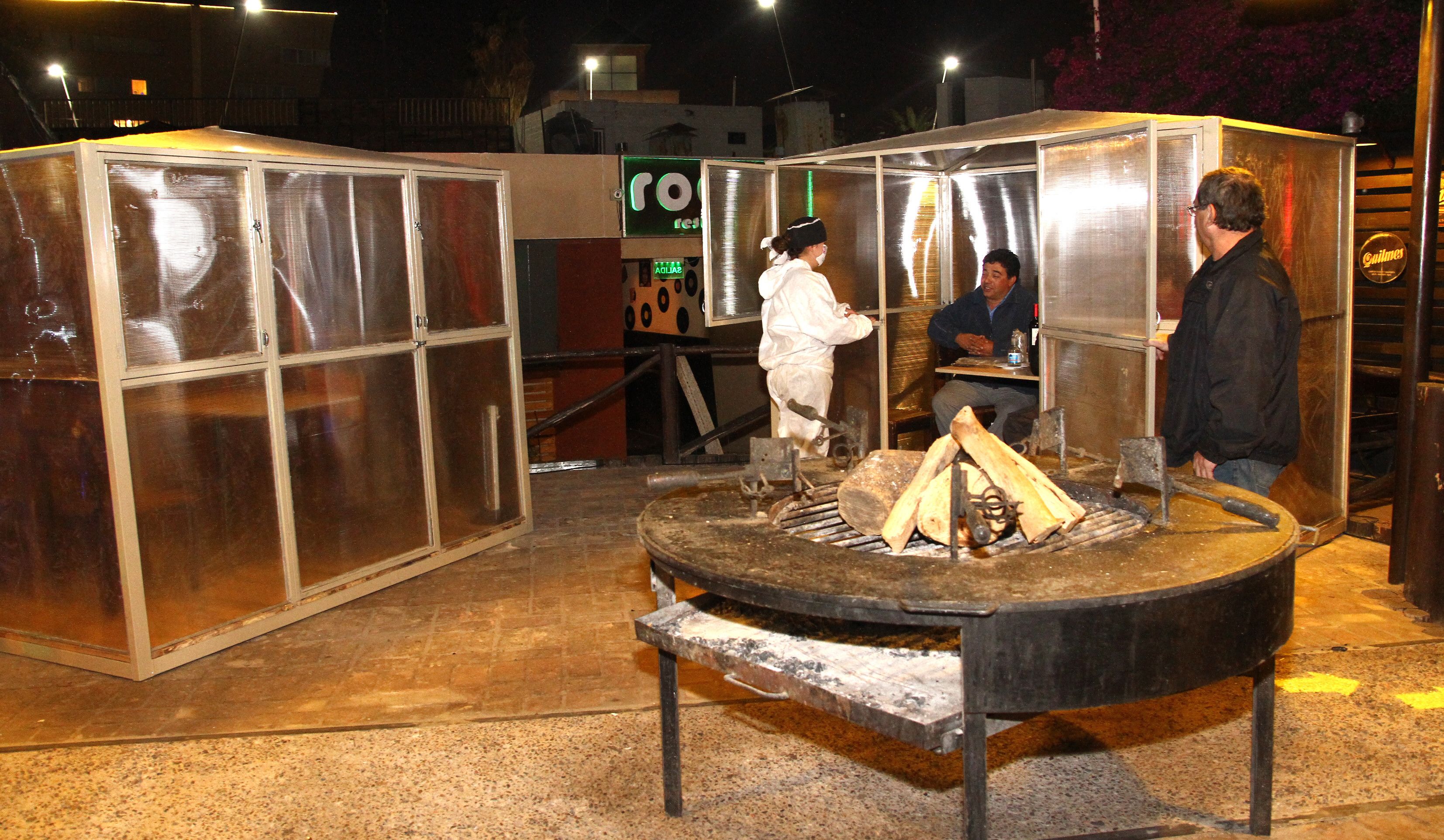 Una original iniciativa ha implementado un resto sanjuanino para que los comensales cenen en su local sin miedo a los contagios por el Covid-19: las mesas están dentro de casas transparentes, para que puedan comer desde dos a cinco comensales en cada una. En el patio de Rocco, Ruben Miadosqui, copió la idea de un restaurante de Ámsterdam e instaló 11 casas de estructura metálica y policarbonato, calefaccionadas. Dos de ellas son para dos o tres comensales, y el resto pueden albergar hasta cinco. Cuentan con puerta y ventanas, por donde los mozos entregan la cena, y en la puerta tienen una perilla que se enciende para llamar al mozo. La seguridad sanitaria se completa con platos, cubiertos y vasos envueltos en bolsas de nylon, no existe el salero sino que todos los aderezos están ensobrados. La tarjeta de crédito la pasa el cliente en el posnet que le acerca el mozo por la ventana. El menú es fijo: punta de espalda a la llama, con ensalada y postre, y una botella de vino incluida en el precio.