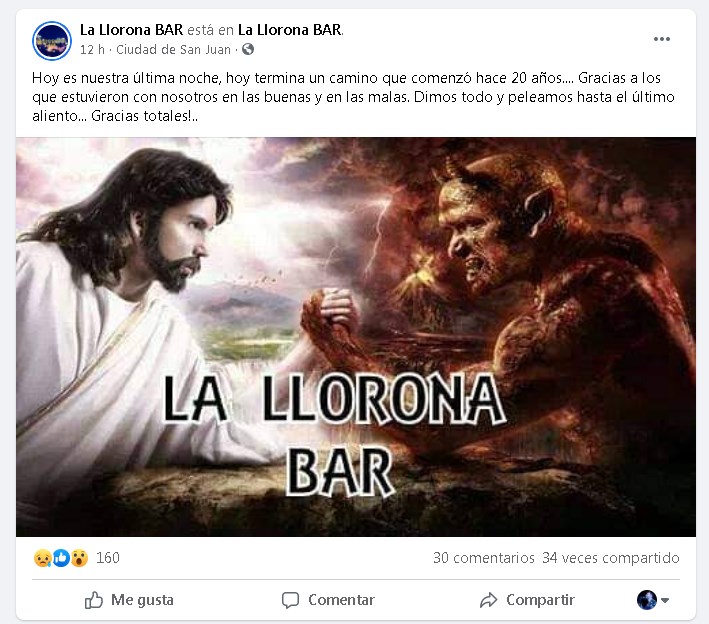 Por su parte, los dueños de "La llorona Bar" también decidieron realizar un posteo en la redes sociales notificando el cierre a sus clientes. "Hoy es nuestra última noche, hoy termina un camino que comenzó hace 20 años. Gracias a los que estuvieron con nosotros en las buenas y en las malas", inició el posteo. Y finalizó: "Dimos todo y pelamos hasta el último aliento, gracias totales".