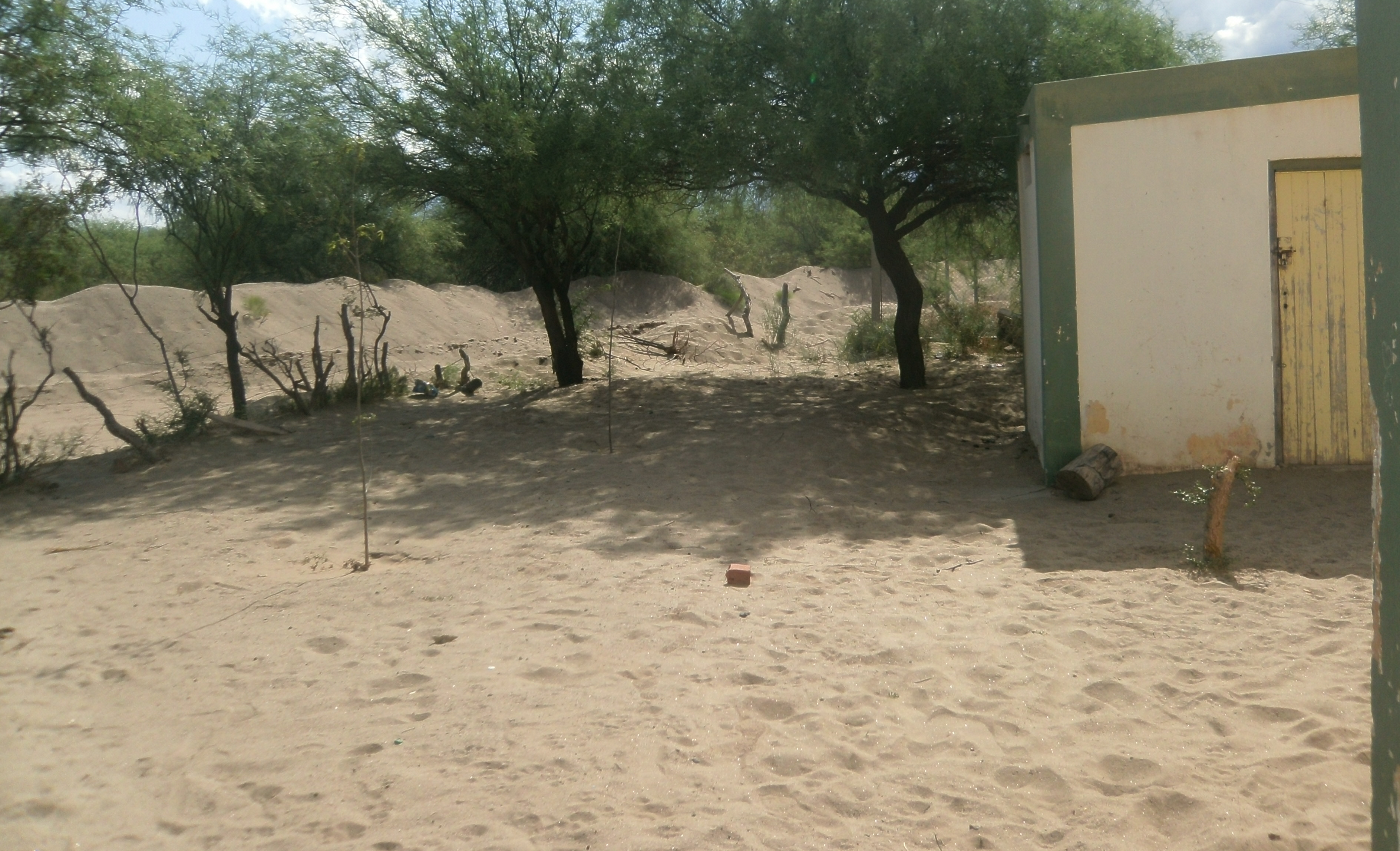 Las tormentas en Valle Fértil, comenzando marzo y en coincidencia con el inicio de las clases, provocaron fuertes crecidas, que en su paso por el arenoso terreno de la Escuela de la Patria dejó un misterioso obsequio: cientos de orificios en la tierra.