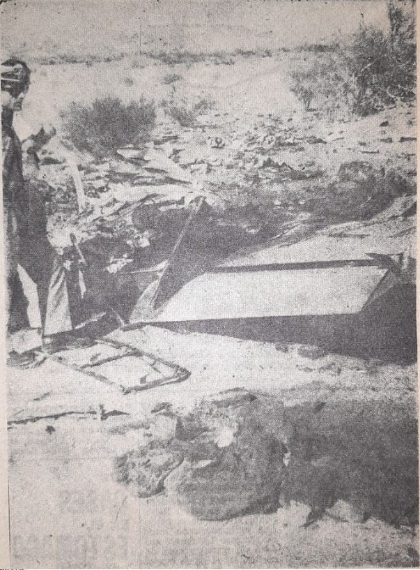 Los efectivos confirmaron que Pastén no mentía: efectivamente hallaron los restos de un avión incendiado y los cadáveres de dos hombres, uno de ellos totalmente carbonizado. También pudieron establecer que se trataba de una máquina dedicada al contrabando, pues a su alrededor y a un radio de unos 20 metros se hallaban esparcidas entre arbustos y piedras, gran cantidad de cajas de cigarrillos importados, de distintas marcas.