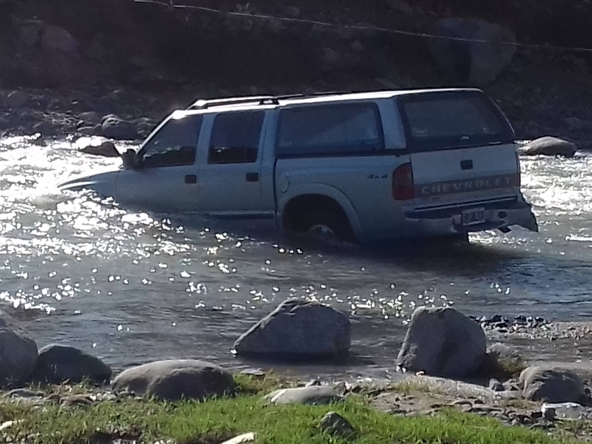 Es que cuando intentaba cruzar el río San Agustín, su camioneta Chevrolet Blazer 4×4 quedó enterrada. Delgado estaba solo, pero muchos vecinos se fueron acercando y, con dos camionetas, lo ayudaron para que pueda sacar el rodado.
