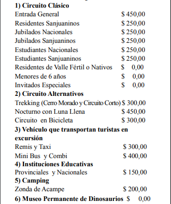 Las nuevas tarifas fueron publicadas en el Boletín Oficial de la Provincia y comenzarán a regir a partir de este viernes. Cabe destacar que los residentes de Valle Fértil, menores de 6 años e invitados especiales no deberán abonar el ingreso.