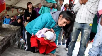 Llegar a la imagen de la Difunta Correa era el objetivo de todos. Después de horas de caminatas o de largos viajes los peregrinos buscaron cumplir sus promesas. Algunos lo hicieron antes de que empezara a amanecer, mientras que muchos optaron por descansar y luego subir. ‘Nos cansamos de caminar a oscuras. Decidimos esperar hasta que haya luz para subir tranquilos‘, dijo Ricardo Bustamante, que llegó desde Rawson junto a sus familiares.