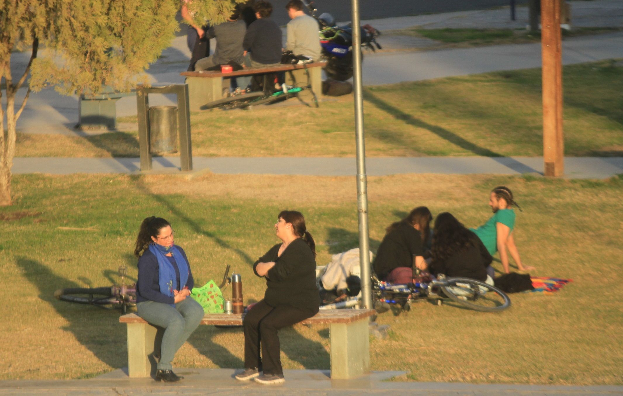 Los chicos a las corridas y empujones suben y bajan por el mismo tobogán en numerosas oportunidades. Las calesitas, los columpios y los sube y baja son usados por todos, y nadie se detiene a limpiarlos. De hecho, muchos esperan el turno para subir a un juego sin importar la distancia social y hasta sentados en el césped. Así, los chicos toman cada rincón de las plazas, sobre todo los fines de semana, cuando el clima acompaña. Pero los niños no van solos, todos llegan acompañados de adultos que con lonitas o sentados en los bancos de las plazas se relajan y comparten largos picnic bajo el sol, algo que también está prohibido a pesar de que en San Juan no hay casos autóctonos. Al ser consultados sobre las razones que los llevan a ser infractores, algunos papás dijeron que no sabían que estaba prohibido el uso de los juegos de las plazas y los espacios comunes, mientras que otros dijeron que aunque saben que están en falta lo hacen casi todas las semanas, para que los chicos “disfruten del aire libre”.