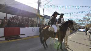 San Juan, 17 de agosto.- Un día soleado y un clima cálido tuvo el desfile cívico militar en honor al 163º aniversario del paso a la inmortalidad del Padre de la Patria, realizado en el departamento de Albardón y con la presencia de las autoridades provinciales, encabezadas por el gobernador José Luis Gioja.