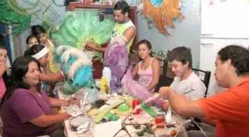 Son las dos, a veces las tres de la mañana, y el trabajo continúa como si fuera de día en la casa de Alberto Alvarez, el presidente de la Agrupación Trabajo, Unión y Esperanza de Villa Unión, en Chimbas. Adentro de su comedor y en su garaje de escasas dimensiones, más de veinte mujeres sentadas apretadas una junto a la otra se dedican a la repetitiva y agotadora tarea de armar penachos y espaldares. En el fondo, con algo más de espacio, una docena de hombres se concentra cada uno en una tarea diferente tratando de no estorbarse para terminar lo antes posible el carruaje antes de que caiga la noche. Afuera, en la calle, los bailarines hacen los últimos ensayos de sus pasos de comparsa al ritmo de la batucada. Y mientras los termos de agua caliente para el mate se rellenan una y otra vez, todos trabajan contra reloj con el objetivo de estar listos y ser los mejores en la segunda pasada del carrusel del Carnaval por Siempre en Chimbas 2010, que será esta noche y la de mañana.