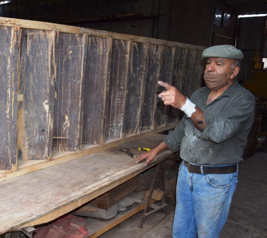 Desde los 12 años trabaja como carpintero y dijo que su oficio le dio las mayores satisfacciones. Estuvo siempre ligado a la iglesia porque en su familia son muy devotos. De hecho, comentó que uno de sus hijos es sacerdote y trabaja en el Arzobispado de San Juan. Hizo sagrarios para muchas parroquias y hasta construyó el báculo de los arzobispos Ítalo Severino Di Stéfano, Alfonso Delgado, Jorge Lozano y Carlos María Domínguez. Sin embargo, el hombre confesó que hacer la restauración de las gigantescas puertas de la iglesia de Jáchal, que la considera parte de su vida, es una de las cosas más lindas que le pasó desde que trabaja. "Esas puertas son mucho más viejas que yo, pero dentro de todo están en buenas condiciones porque siempre las pintaron", dijo y contó que las puertas miden más de 4 metros de alto y que la de la entrada principal tiene también 4 metros de ancho. "Además ya restauré casi el 80% de los retablos -es la pared que va sobre lo que popularmente se conoce como altar, atrás de la mesa del sacerdote- y unas escaleras que llevan a un entrepiso que estaban muy deterioradas. Les mejoré los escalones y los barrotes para sostenerse. También estoy trabajando en la carpintería de las puertas y ventanas de la sacristía", contó el carpintero y dijo que está feliz de ver cómo la obra de la iglesia avanza día a día. Comentó que su trabajo es tan artesanal que muchas veces hasta tiene que fabricar herramientas para poder seguir con la restauración. "Se trata de puertas y carpintería muy antigua. Los herrajes se nota que fueron hechos especialmente para esas puertas y hay que sacarlos con mucho cuidado, porque ni siquiera llevan tornillos, sino unos clavos doblados en las puntas", dijo y reiteró que este desafío es uno de los más complejos, pero más satisfactorios que le tocó realizar en sus años como carpintero.