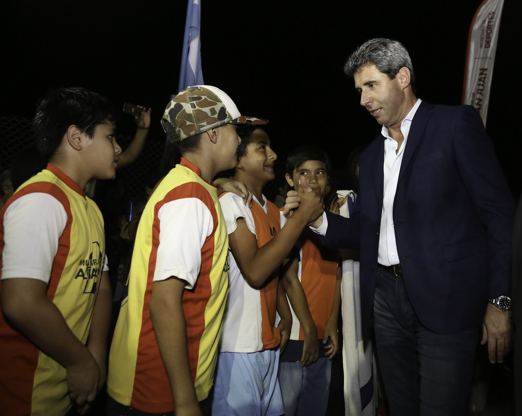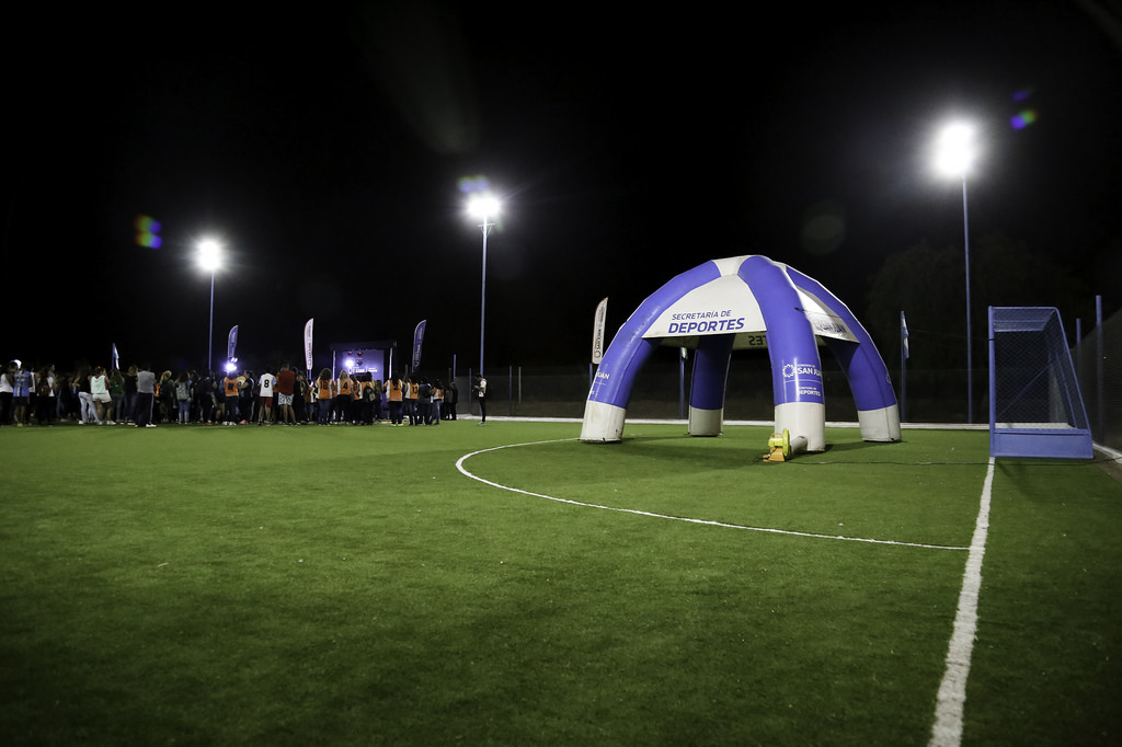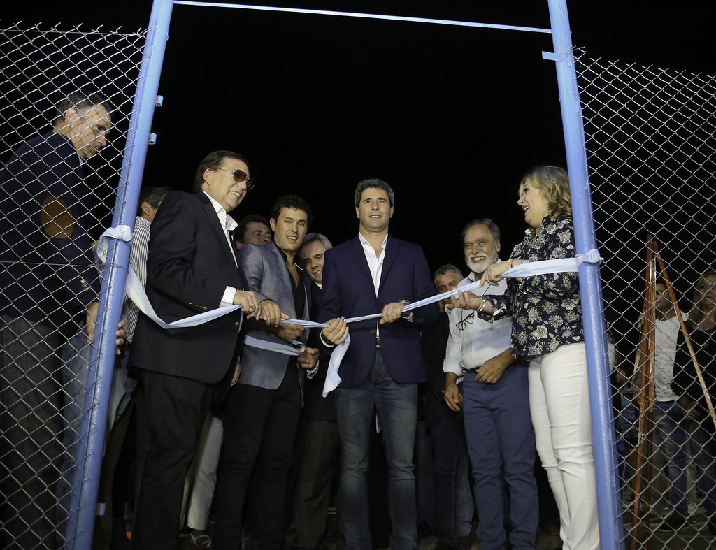 En el complejo, antes de ingresar al flamante campo deportivo, las autoridades inauguraron la iluminación consistente en seis torres dotadas con luminarias LED.