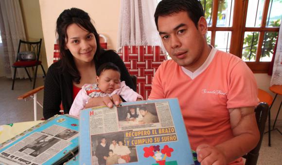 Abel tenía 8 años cuando sufrió la amputación de su brazo. Aquella vez llevaba, como todos los días, una botella de agua y dos sandwiches para compartir con su padre, quien trabajaba en una finca. ‘No sé que quise hacer, pero metí la mano a la toma del tractor. Se me retorció y amputó debajo del hombro. En total me operaron 10 veces, la última vez fue en 2005. Me sacaron piel del muslo, músculos de la espalda, nervios y venas de la pantorrilla. Durante 10 años, todos los días, hice rehabilitación, pero valió la pena. Las únicas secuelas que me quedaron es que no puedo generar mucha presión con los dedos y que la muñeca quedó con poca firmeza’, relató.