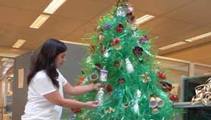 San Juan 21 de diciembre.- El tercer piso del Centro Cívico lució distinto en la mañana de hoy. Es que los adornos navideños invadieron los espacios comunes, pasillos, oficinal y entradas a reparticiones. Pero lo llamativo es que los materiales utilizados para hacer los adornos, fueron obtenidos de la basura. De esta manera un árbol de casi 3 metros y los 100 adornos llamaron la atención de toda persona que transito los pasillos del edificio.