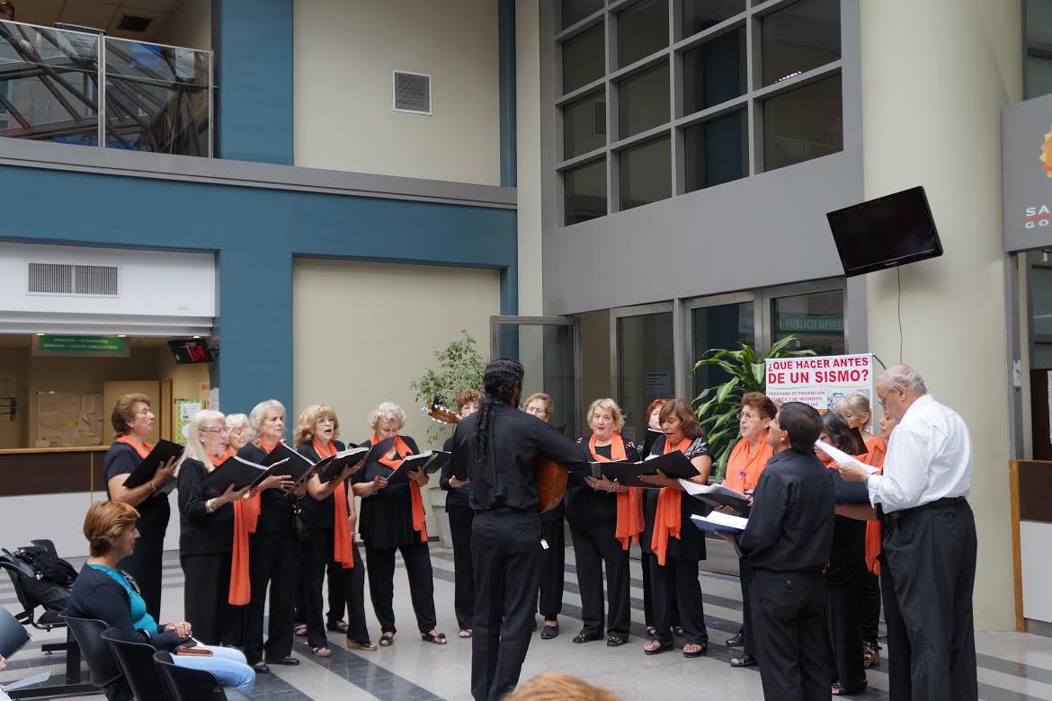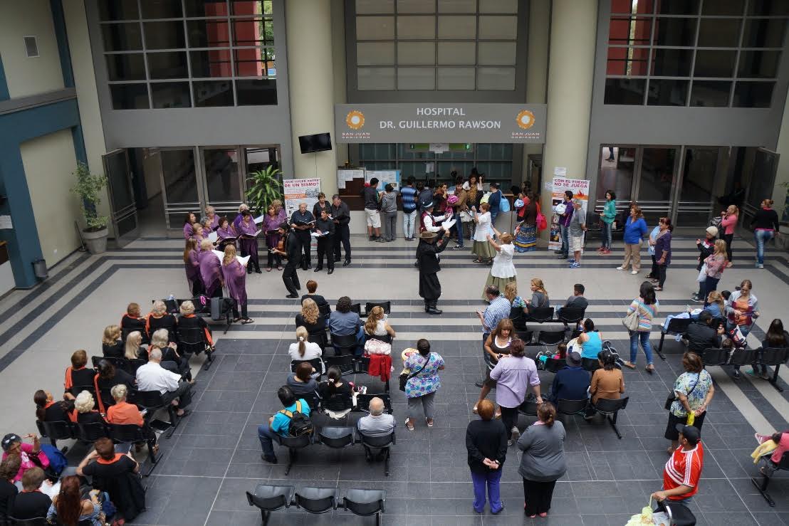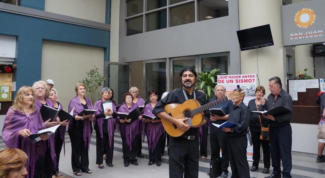 Miembros del Coro de Adultos Mayores de San Juan y del ballet de la Dirección de Políticas para el Adulto Mayor brindaron un recital para los pacientes del Hospital Rawson, donde además, bailaron folklore.