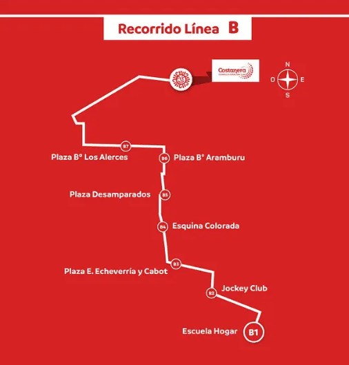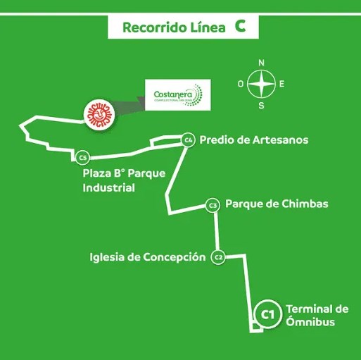 Las salidas hacia el Complejo Ferial Costanera son desde las 19 hasta las 23, todos los días. En caso de que la afluencia de pasajeros sea muy alta se dispondrá un refuerzo en la línea correspondiente cada 15 minutos. Los horarios de salida desde el Complejo ferial para retornar son desde las 23 hasta las 4 de la mañana, todos los días desde el acceso 4. Las unidades salen cuándo están completas para evitar la concentración de pasajeros.