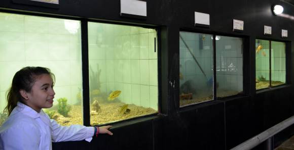 El acuario actualmente tiene unos 500 peces y entre los exóticos que aún siguen nadando en sus aguas hay carassius, neones, peces ángel o viejas del agua, entre otros. A su vez, en un sector no permitido al público conformaron un plantel de reproductores.