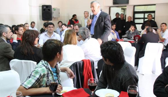 Previamente a esta firma de convenio, el gobernador Gioja, Juan Carlos Molina y el ministro de Desarrollo Humano, Daniel Molina, compartieron un almuerzo con los jóvenes en proceso de rehabilitación de adicciones de los Proyectos Juan, María del Carmen y Hospital de Día San Benito.