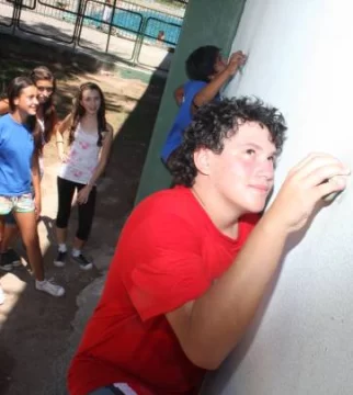 "A algunos les cuesta mucho, pero a mí me encanta. Ya llegué arriba tres veces", contó emocionada Rocío (13), sobre sus logros en la palestra, armada sobre una de las paredes del edificio de la piscina climatizada. Allí los chicos hacen escalada y el "arriba", es decir, el límite vertical, está como a cuatro metros de altura.