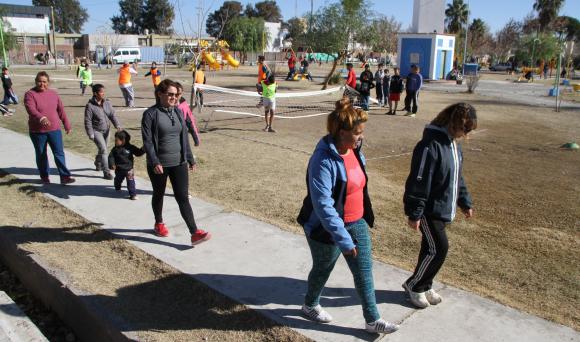 Los chicos no perdieron tiempo. Ni bien llegaron corrieron a buscar un chaleco o camiseta para formar parte de un equipo. Luego, invadieron las canchas de hockey sobre césped, vóley, fútbol y fútbol tenis que improvisaron en la plaza. Pero jugaron sin hinchada. Sus mamás se agruparon para caminar 20 minutos alrededor de la plaza como para entrar en calor y subir la adrenalina para comenzar con la siguiente actividad; otros 20 minutos más de ejercicios en los aparatos de gimnasia que hay en este paseo. Para completar la rutina, las mujeres participaron en una clase de aerobic a cargo de una de las profesoras del área Deporte del municipio. Recién después pasaron a alentar a sus hijos que aún seguían participando en las diferentes disciplinas deportivas.